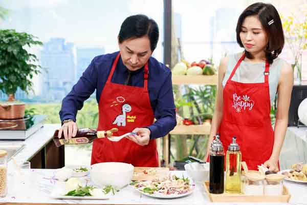 Tại chương trình, nam nghệ sỹ không ngần ngại vào bếp trổ tài nấu nướng và chiêu đãi món cháo gỏi gà khiến mẹ vợ Xuân Yến vô cùng hạnh phúc.