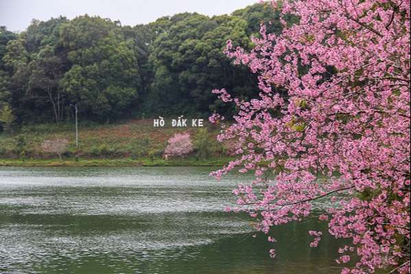 Mai anh đào khoe sắc ở hồ Đăk Ke