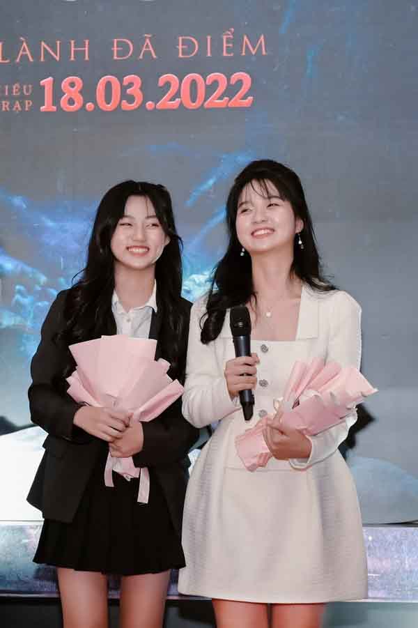 Là một trong 4 diễn viên chính của phim, Mai Cát Vi có mặt từ rất sớm để cùng các cô chú, anh chị nhìn lại thành quả lao động của mình. Em chọn thiết kế váy nhẹ nhàng, nữ tính kết hợp cùng kiểu tóc buộc hai bên đúng với lứa tuổi. Có thể thấy, so với thời điểm tham gia Hai Phượng, Mai Cát Vi có sự thay đổi về mặt ngoại hình. Cô bé giờ đây cao lớn, xinh đẹp hơn và nhận được nhiều lời mời chụp ảnh từ phía khán giả. Mai Cát Vi tâm sự bản thân rất vui khi được mọi người nhận ra và ủng hộ.
