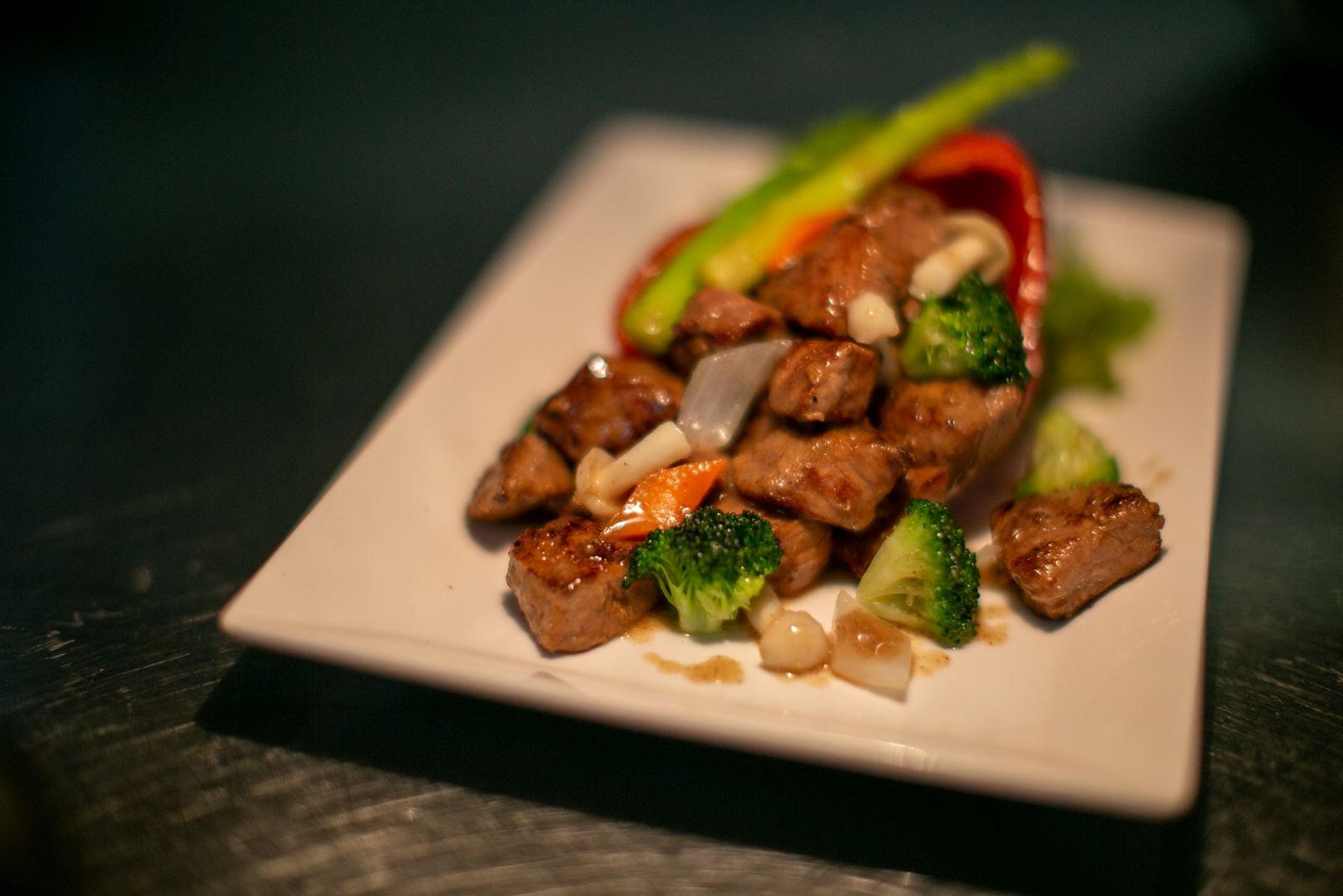 Không chỉ được chứng kiến những màn trình diễn đẹp mắt, thực khách cũng được thưởng thức những món ăn tinh tế, tỉ mỉ. Một trong những món ăn không thể không nhắc tới là Bò Wagyu xốt tiêu trắng trong trái ớt chuông. Thịt bò Wagyu được xử lý vừa chín tới bằng kinh nghiệm của những đầu bếp hàng đầu để giữ được sự mềm mại, ngon miệng.
