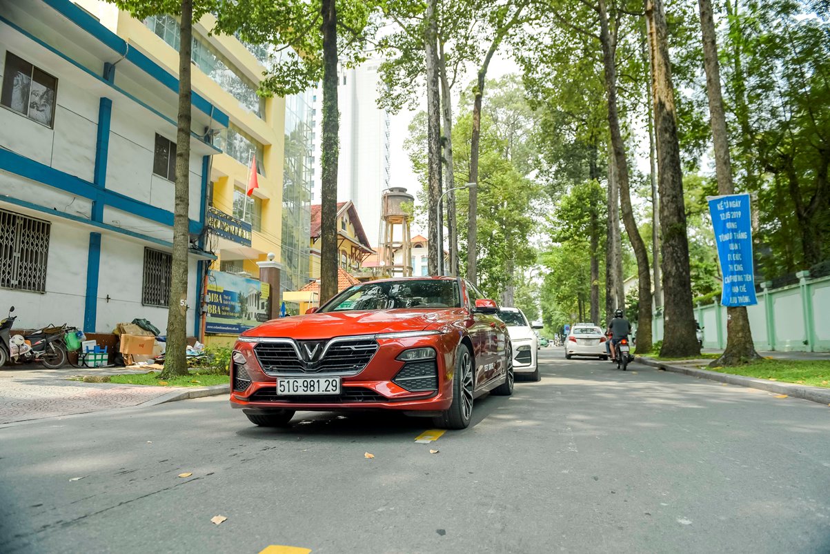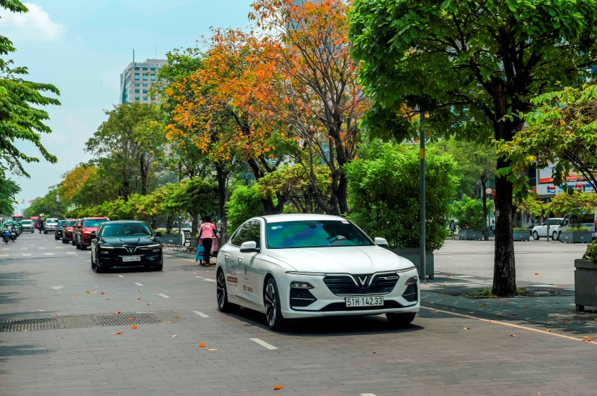 Đường phố Sài Gòn quen thuộc được tô điểm bằng vẻ đẹp sang trọng của những chiếc xe VinFast Lux.