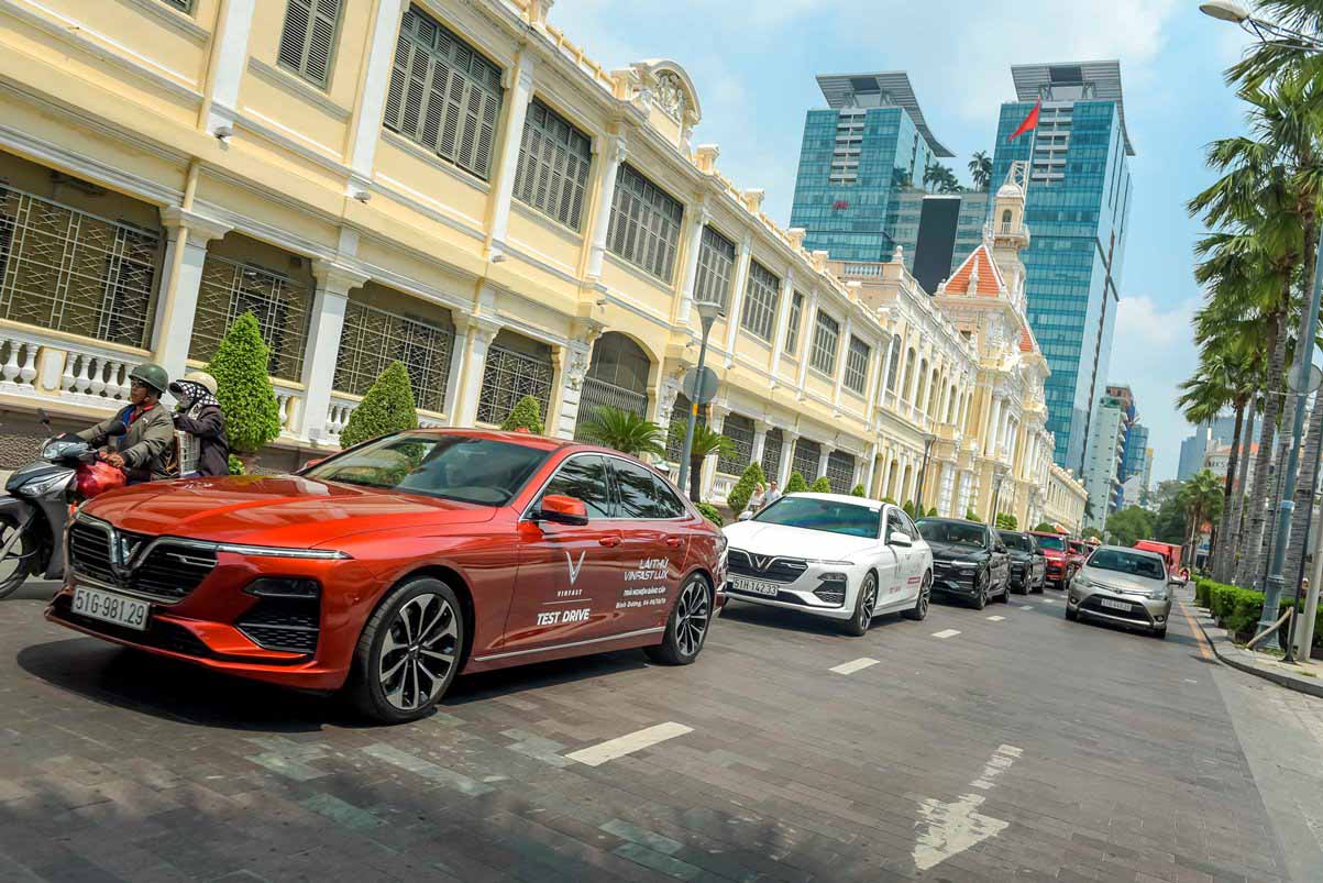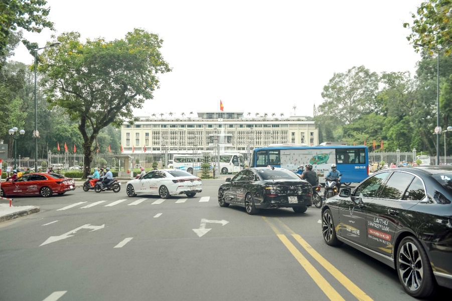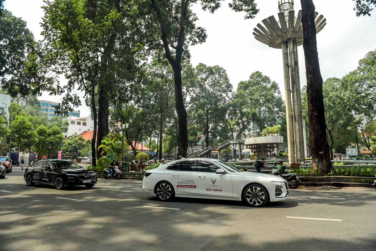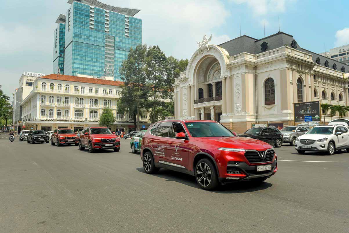 Xuất hiện tại tất cả các điểm đến nổi tiếng và quen thuộc của TP.HCM như Cầu Sài Gòn, Nhà thờ Đức Bà, Nhà hát Thành phố, Hồ Con Rùa, Landmark 81… đoàn xe diễu hành VinFast đi qua tất cả các tuyến phố sầm uất của quận 1, quận 3, quận 5, Phú Nhuận ra đến quận 2, quận 9, Thủ Đức, Tân Phú….