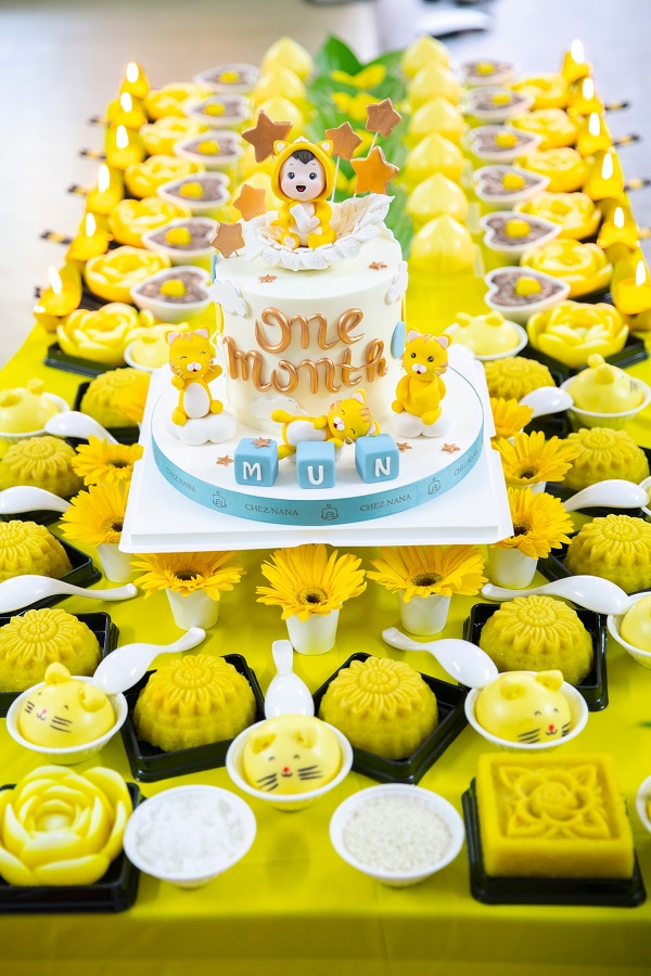 Mâm cỗ mừng đầy tháng của con trai Mâu Thủy.