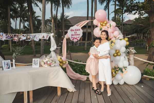 Nhân dịp sinh nhật con gái yêu, MC Anh Thơ có kỳ nghỉ dưỡng cùng gia đình tại Phú Quốc và tổ chức tiệc mừng cho con gái. Tại buổi tiệc nữ MC diện chiếc đầm trắng nhẹ nhàng khoe nhan sắc thanh lịch, trẻ trung. Bé Thỏ đáng yêu trong chiếc đầm hồng xinh xắn.