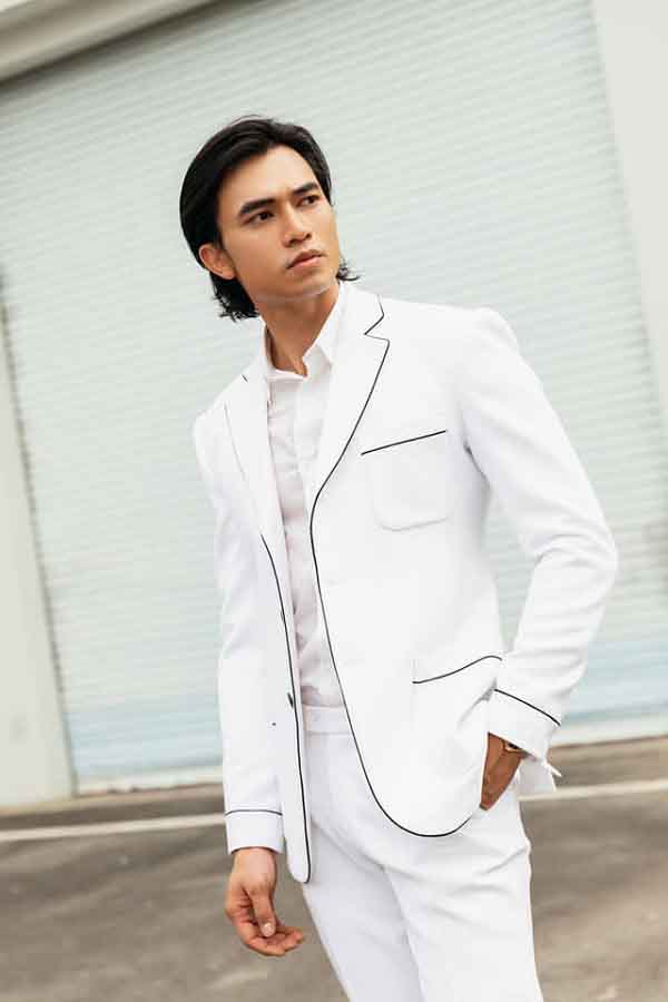 Anh khoe vẻ ngoài nam tính, lịch lãm trong bộ suit trắng.