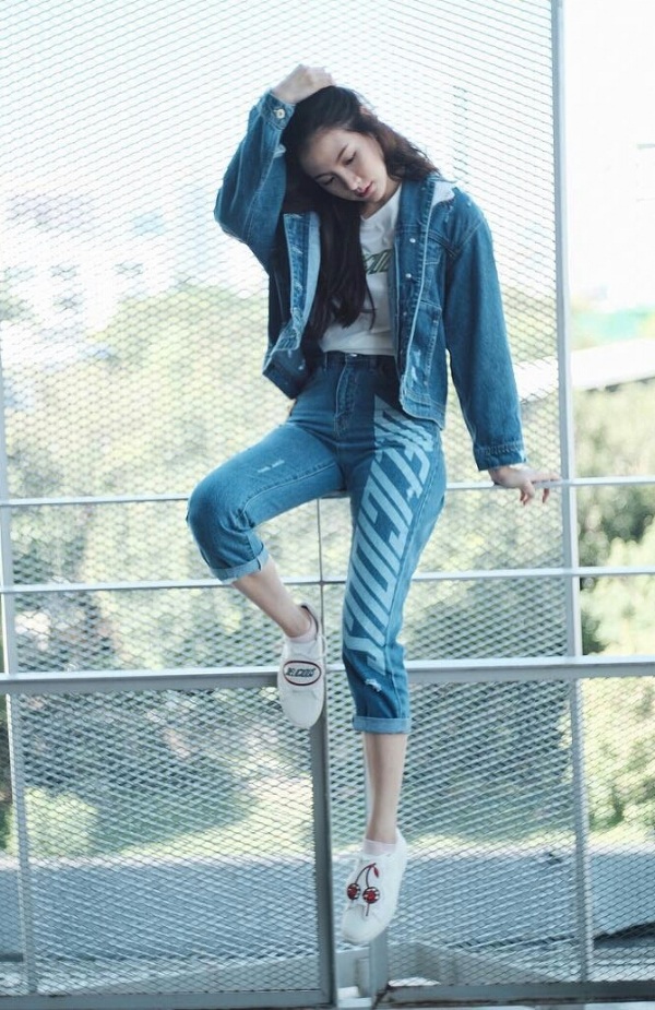 Dù xây dựng hình tượng nữ tính, ngọt ngào nhưng thỉnh thoảng Baifern cũng thử làm mới mình khi diện những set đồ năng động, khỏe khoắn.