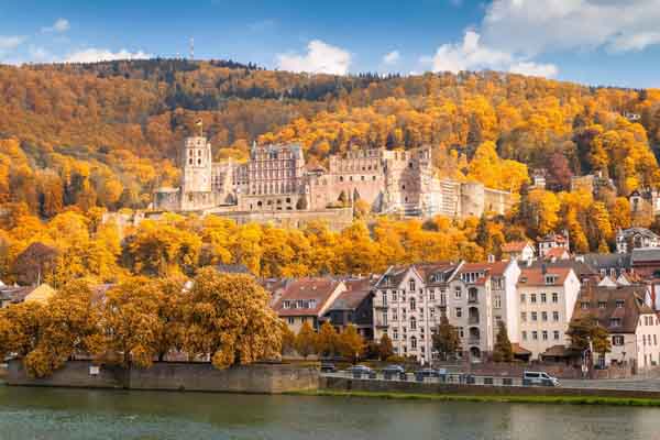 Nếu bạn đang tìm kiếm một thị trấn cổ tích để ghé thăm trong chuyến du lịch đến Đức mùa thu nay, thì không có sự lựa chọn nào lý tưởng hơn Heidelberg. Trên bờ sông Neckar, Heidelberg là một trong những điểm đến lãng mạn nhất nước Đức, nơi sẽ làm bạn phải ngỡ ngàng trước những công trình cổ kính cùng phong cảnh thiên nhiên tuyệt đẹp. Nổi tiếng nhất là tòa lâu đài Heidelberg xây từ thế kỷ 15 trên một đỉnh đồi cao, nơi bạn có thể nhìn toàn cảnh thành phố với những dãy nhà lợp mái đỏ nổi bật và những điểm du lịch nổi tiếng nhất như cầu Carl Theodor, nhà thờ Heiliggeistkirche hay dòng sông Neckar thơ mộng. Phố cổ Heidelberg có một số điểm tham quan bạn không thể bỏ lỡ: Cầu Old Stone – một trong những cây cầu kiến trúc Trung Cổ đẹp nhất châu Âu, Quảng trường hay Karlsplatz đẹp như tranh vẽ… Nếu muốn, bạn có thể đi dạo trên đường Philosophenweg, một lối đi nhỏ trên sườn đồi, nơi đại thi hào Goethe, triết gia Hegel hoặc nhà soạn nhạc tài ba Schumann đi bộ và lấy cảm hứng trong khi tận hưởng khung cảnh tuyệt vời. Tháng 10 là thời điểm mùa thu Heidelberg trông rực rỡ nhất.