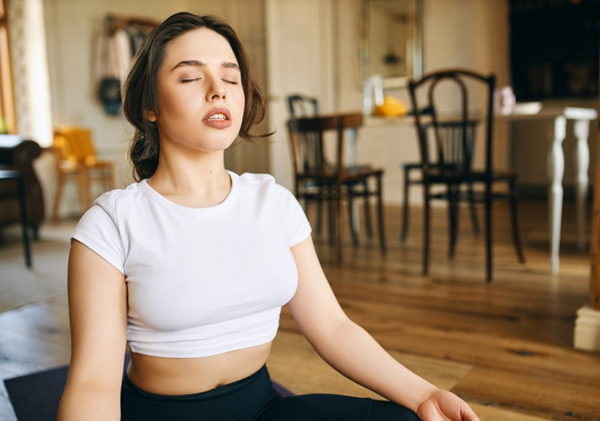 Hít một hơi sâu rồi thở ra chầm chậm, cảm nhận cảm giác lúc không khí đi vào và ra khỏi cơ thể. Hít thở sâu làm tăng oxy lên não, ổn định cảm xúc và giảm căng thẳng.