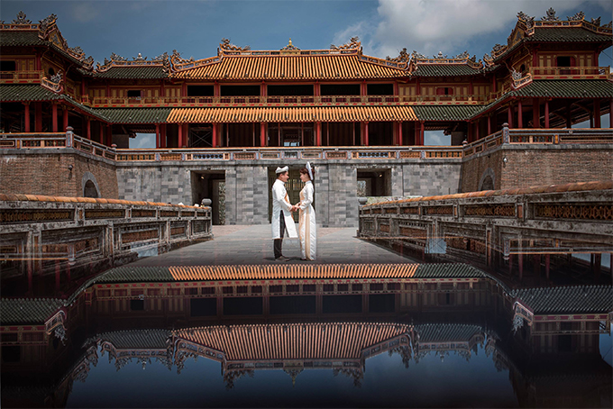 Việc uyên ương tạo dáng nhìn nhau kết hợp ảnh chụp toàn cảnh là cách khéo léo để che giấu đôi mắt đang dần nheo lại. Cả hai có thể tăng mức độ tình cảm trong bức hình nhờ các cử chỉ như nắm tay, thơm má hoặc ôm hôn.