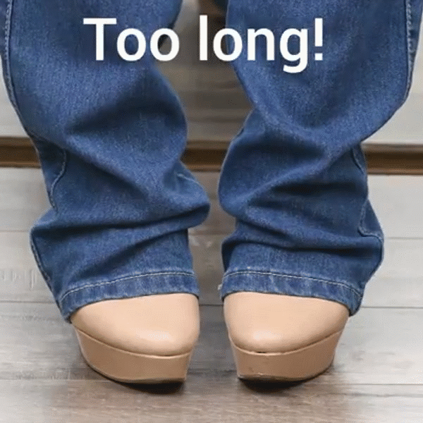 Khi quần của bạn quá dài, đừng lo, đã có cách. Hãy gập ống quần bằng độ dài cần thiết và may quanh vết đã gập, chừa lại mép gấu.