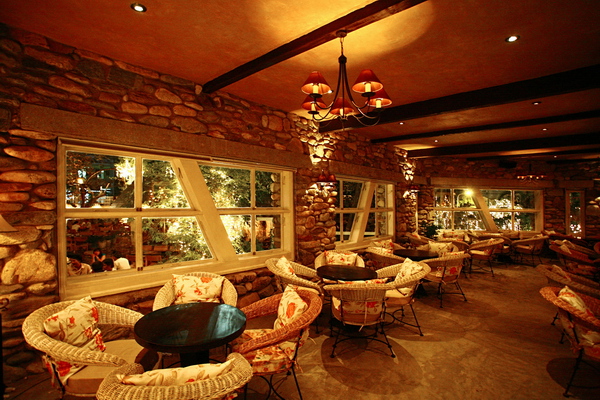 Bức tường đá và những ô cửa sổ gợi một cảm giác đang đứng trong ngôi biệt thự ở xứ lạnh.