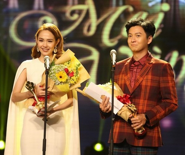 Minh Hằng trên sân khấu của lễ trao giải “Mai Vàng 2017” khi nhận giải “Nữ diễn viên Điện ảnh – Truyền hình xuất sắc nhất” cho vai diễn Hà My trong phim điện ảnh “Sắc đẹp ngàn cân”.