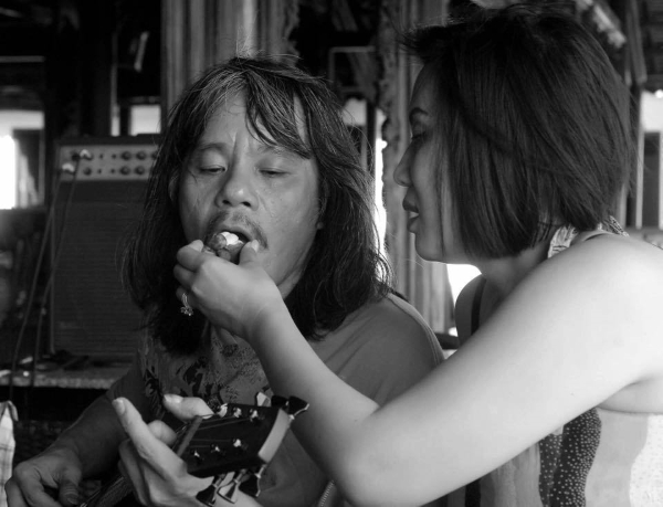 Bên trong là thế giới của anh Minh Kèn lặng im, sâu thẳm. Anh là một trong ba thành viên chủ lực chơi nhạc chính hàng đêm ở bar. Anh vừa solo độc tấu Guitar vừa thổi kèn Saxophone.