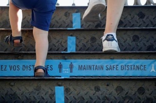 Tháp Eiffel ở Paris chính thức đón khách tham quan trở lại từ ngày 25.6 sau hơn 3 tháng đóng cửa vì dịch bệnh, lần đóng cửa lâu nhất từ thế chiến thứ II. Tuy vậy, tầng trên cùng ngọn tháp nổi tiếng này vẫn chưa mở cửa cho tới hết tháng 7. Du khách đến đây chỉ có thể loanh quanh qua các bậc thang và khu vực quảng trường phía dưới.