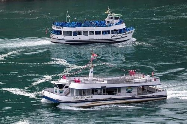Bức ảnh trái ngược của 2 đoàn du khách Mỹ và Canada khi tham quan con thác Niagara nổi tiếng nằm giữa 2 nước này. Trong khi con thuyền của Mỹ thì chật cứng du khách còn thuyền của Canada lại rất thưa thớt.
