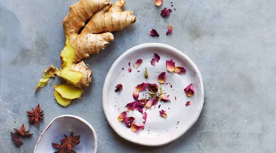 2 lát gừng, một nắm hoa hồng pha thành trà nóng có thể giảm buồn nôn và giảm đau. Hoa hồng có thể làm dịu gan và cân bằng cảm xúc. Hoa hồng có tác dụng thúc đẩy quá trình tuần hoàn máu, nếu lượng kinh nguyệt ra nhiều thì nên đặt ít.