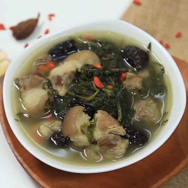 Món hầm này có công dụng bổ trung ích khí, thúc đẩy tuần hoàn máu, loại bỏ huyết ứ, điều kinh, dưỡng huyết. Nó phù hợp với những người kinh nguyệt không đều. Dùng 200g thịt nạc heo đem gầm với một nắm ngải cứu để ăn cùng cơm.