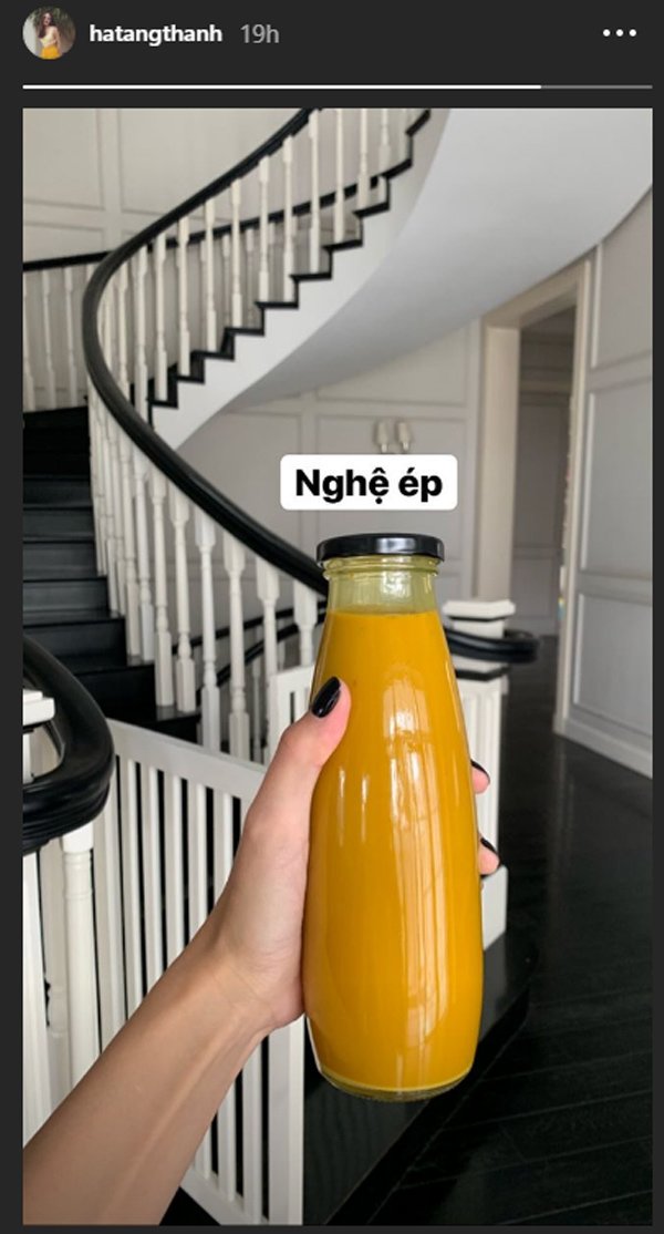 Bí quyết của Tăng Thanh Hà là tự mình chế biến những loại đồ ăn, thức uống giàu dinh dưỡng cho tốt cho sức khỏe và sắc đẹp. Mới đây, người đẹp cũng tiết lộ một loại thức uống mới chính là nước ép nghệ tươi. Loại nước được làm từ thực phẩm nổi tiếng có khả năng chống lão hóa và cải thiện sức khỏe làn da.