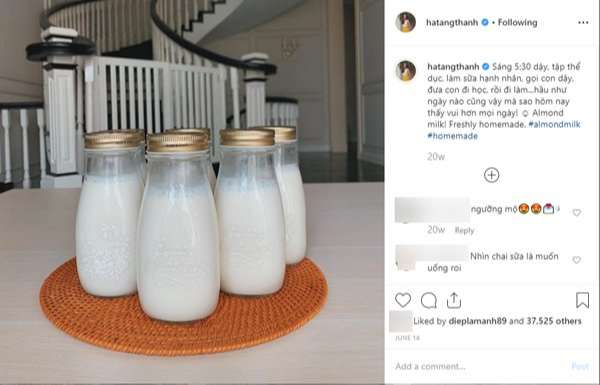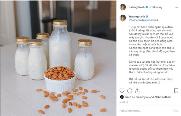 Ngoài nghệ tươi, Tăng Thanh Hà còn sử dụng những nguyên liệu khác để ép nước uống nữa. Trong đó không thể không kể đến hạt hạnh nhân.