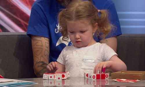 Ophelia đã làm bài kiểm tra Stanford-Binet, dùng để đánh giá trẻ từ hai tuổi trở lên về nhận thức không gian, kỹ năng nói và tư duy logic.