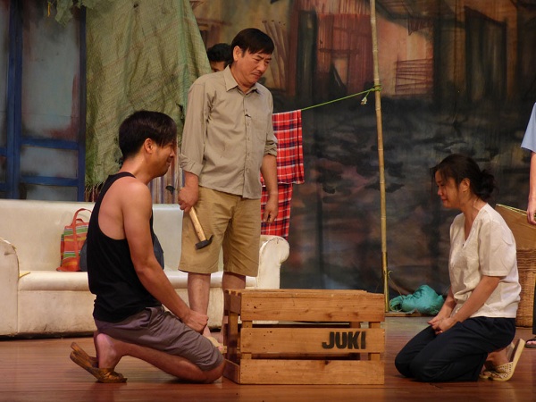 Đoàn Thanh Tài, Thành Hội và Hoàng Vân Anh trong một cảnh kịch
