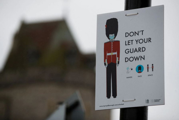 Một tấm biển khuyến cáo người dân giữ khoảng cách, đeo khẩu trang và rửa tay để phòng COVID-19 – Ảnh: REUTERS