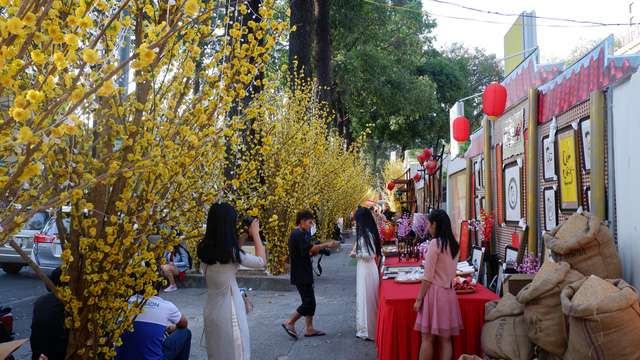 Nhà văn hóa Thanh Niên, bệnh viện Chợ Rẫy và công viên Văn hóa Văn Lang đang ngập tràn vườn hoa mai đào nổi bật giúp bạn có bộ ảnh Tết tuyệt vời, ngoài ra tại đây còn có nhiều gian hàng ẩm thực với các món ăn ngon mà rẻ.