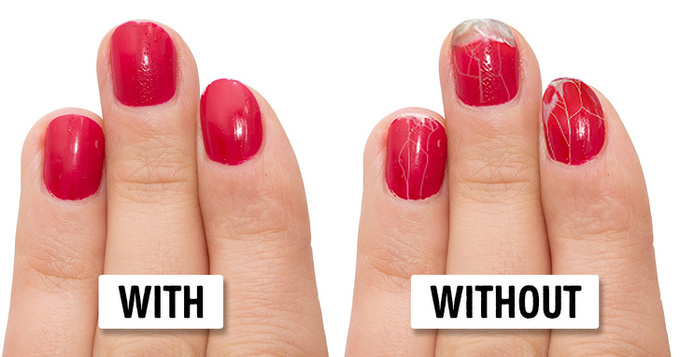Lớp sơn lót sẽ giúp bảo vệ phần nào móng tay khỏi hóa chất độc hại và giúp giữ màu lâu hơn, giảm bớt tình trạng bong tróc.