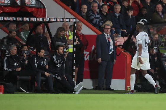 Thi đấu tốt trong trận gặp AFC Bournemouth nhưng Pogba vẫn phải rời sân để nhường chỗ cho D.Blind. Quá bực bội, cầu thủ người Pháp phớt lờ ông thày Mourinho trong lúc di chuyển vào phòng thay đồ.