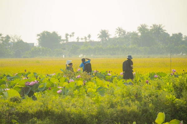 Chị Thu Thảo (Thành phố Huế) cho biết sáng sớm chị đã hẹn hò cùng bạn bè, đi một quãng đường đến đây để cảm nhận rõ nét sự an yên được bao phủ bởi sắc hồng của sen tại làng La Chữ: “Mình đã nghe nói về cảnh đẹp ở nơi đây từ lâu mà chưa có dịp đi thử. Năm nay, nghe tin sen nở rộ là quyết định rủ bạn bè đi liền, vừa ngắm cảnh vừa có hình đẹp. Đầm sen nơi đây cho mình cảm giác chữa lành tâm hồn rất nhiều.”