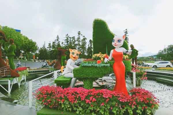 Tiếp đến, không thể không kể đến linh vật chú mèo Đà Lạt được đặt tại bùng binh chợ Đà Lạt, gần đoạn hồ Xuân Hương. Bộ đôi mèo quý tộc này là một trong những thiết kế linh vật gây xôn xao cộng đồng mạng suốt thời gian qua bởi giao diện “sang chảnh”. Thậm chí, nhiều người cho rằng hai linh vật mèo này được trang trí và sáng tạo giống như bá tước và công chúa của tầng lớp quý tộc mèo.