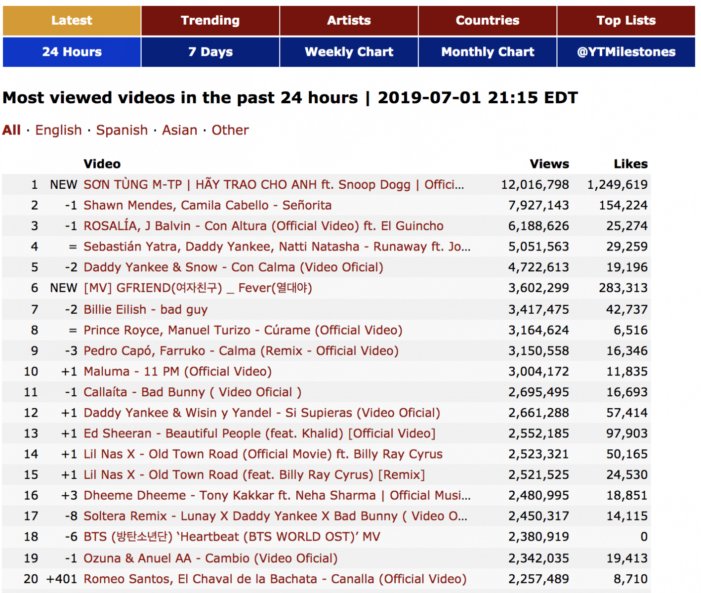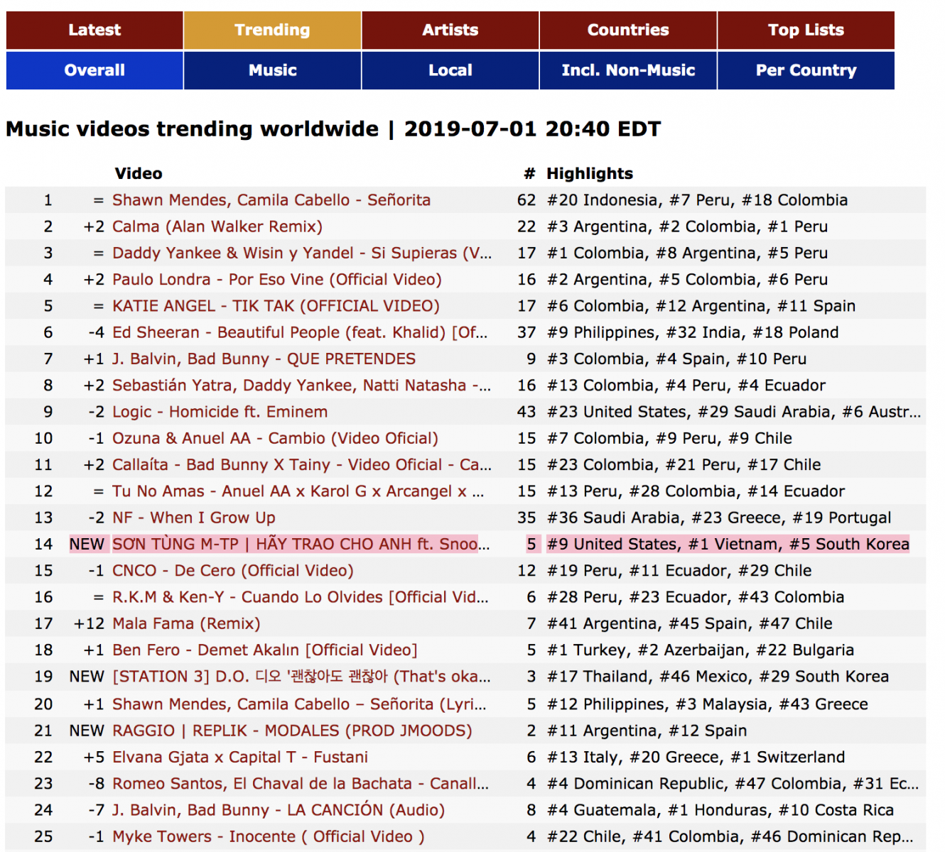 Đặc biệt ở, Sơn Tùng M-TP đã xuất sắc sở hữu MV được xem nhiều nhất thế giới trong 24h của ngày 1/7. Tính riêng ở khu vực châu lục, Sơn Tùng M-TP cũng nghiễm nhiên sở hữu MV được xem nhiều nhất Châu Á trong 24h của ngày 1/7.
