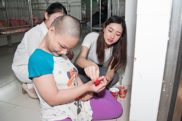 Không chỉ đơn thuần là đến trao tặng quà mà dàn Hoa Á hậu còn giao lưu và chơi đùa cùng các em nhỏ tại mái ấm. Hơn cả thế, các em đều tỏ ra thích thú khi được những người đẹp hướng dẫn rửa tay đúng cách vô cùng tận tình. Không chỉ thân thiết với những trẻ em cơ nhỡ mà dàn hậu còn được tiếp xúc, trò chuyện với nhiều hoàn cảnh khuyết tật và người già không nơi nương tựa nơi đây.