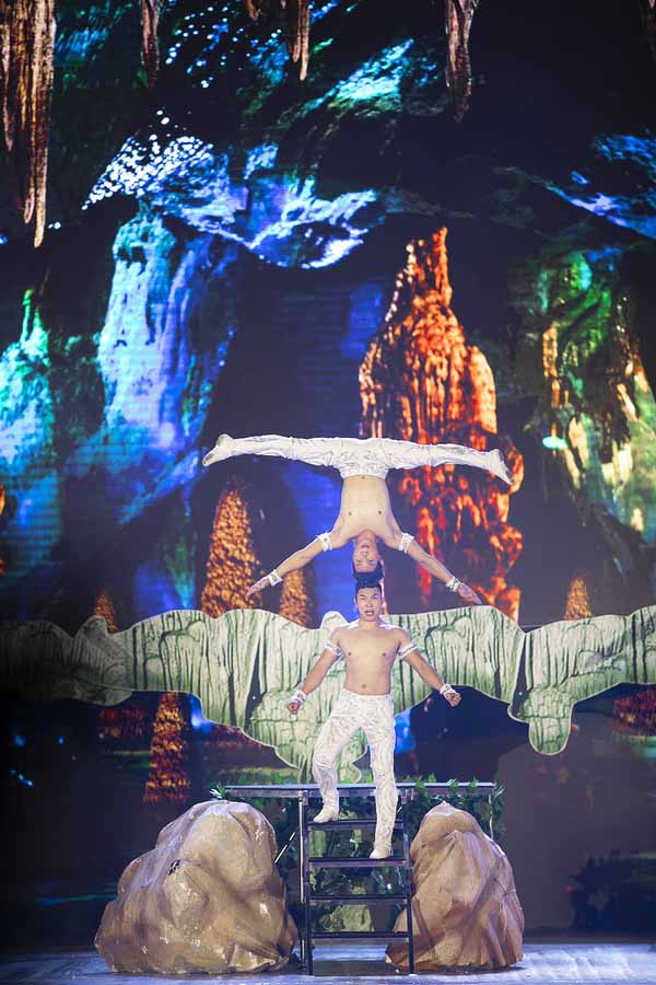 Lễ hội hang động Quảng Bình vừa diễn ra tối 20/7 thu hút hàng ngàn người dân địa phương đến xem. Sau phần mở màn của ca nương Kiều Anh, Quốc Cơ – Quốc Nghiệp mang đến tiết mục Sức mạnh đôi tay đầy mạo hiểm.