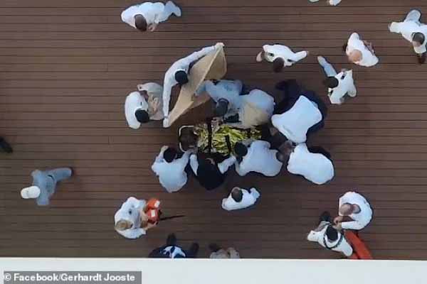 Ông Gerhardt Jooste, một luật sư tài chính từ Nam Phi, có mặt trên du thuyền lúc đó đã ghi lại khoảnh khắc giải cứu nam du khách từ tầng trên của con tàu. Video clip cho thấy một chiếc thuyền cứu hộ được hai cần cẩu kéo lên phía bên của du thuyền trước khi hành khách gặp nạn được bọc trong một chiếc chăn bạc bước ra.