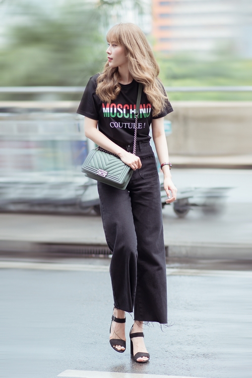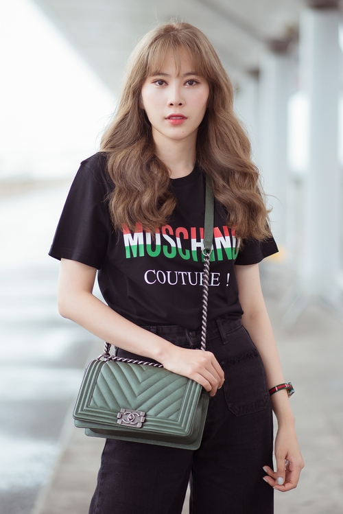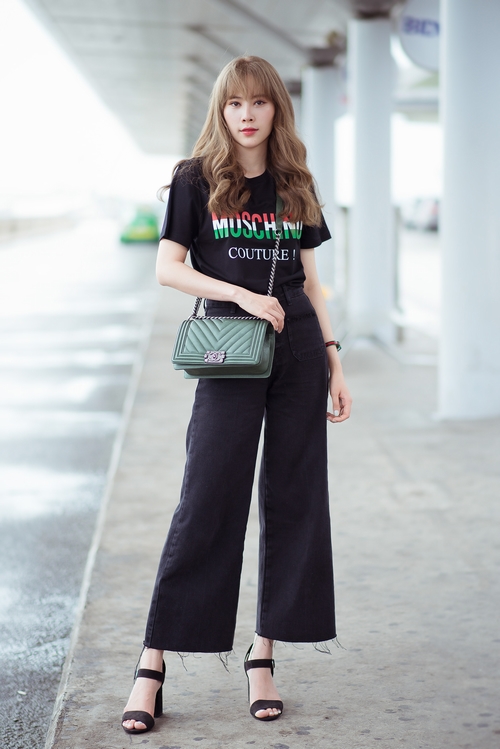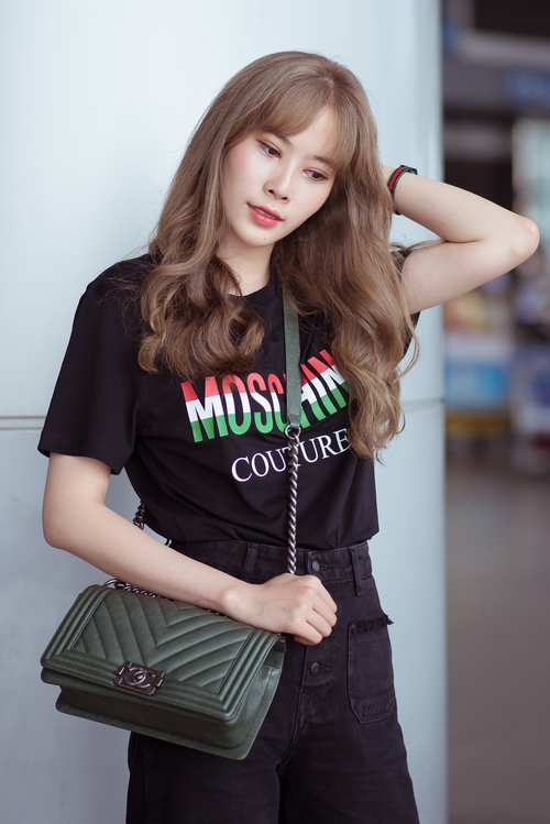 Được biết, với chiếc áo mới nhất từ thương hiệu Moschino với giá 225$ đơn giản kết hợp cùng quần ống loe, Nam Em đã khéo léo khi khoe được vòng eo thon gọn cùng đôi chân dài miên man. Không chỉ thế, chiếc đồng hồ của Gucci với giá $910 cùng chiếc túi Chanel với giá $6,500 đã khiến Nam Em trở nên thời thượng hơn tại sân bay.