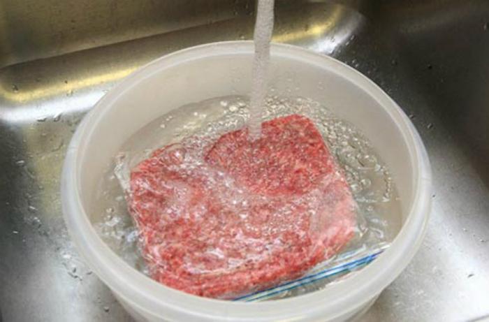 Có thể sử dụng lò vi sóng để rã đông ở nhiệt độ thích hợp. Bọc kín thực phẩm trong túi nilon để chất dinh dưỡng không bị mất đi. Bạn có thể cho thực phẩm vào ngăn mát tủ lạnh để rã đông từ từ. Không sử dụng nước nóng để rã đông sẽ làm hỏng thịt, thuận lợi cho vi khuẩn phát triển.