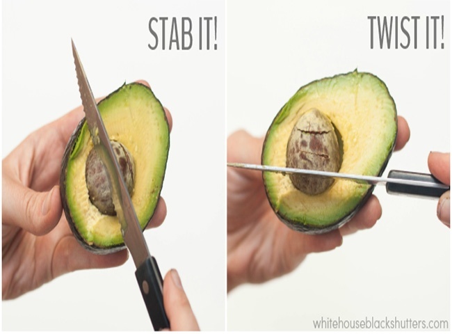 Chỉ cần 3s để lấy hạt bơ ra dễ dàng bằng cách dùng một con dao bén và cứa lên hạt bơ.