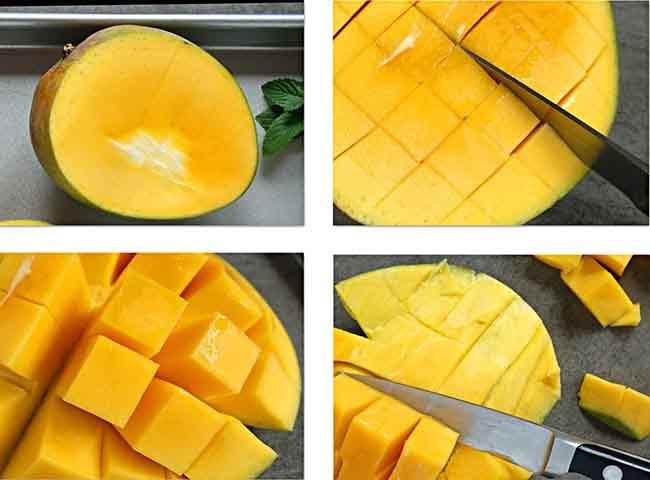 Thay vì tỉ mẩn ngồi gọt vỏ xoài rồi mới cắt từng miếng thì đây là cách cắt xoài đẹp, nhanh và đỡ mất công nhất.
