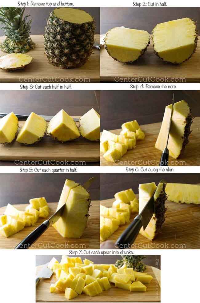 Đây là các công đoạn của việc cắt thành công một trái dứa.