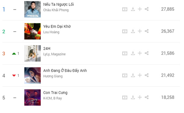 Top 5 ca khúc dẫn đầu bảng xếp hạng tuần qua