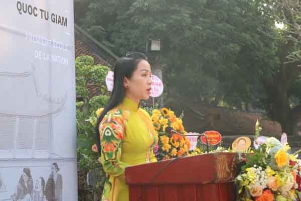 Đại diện phát biểu tại lễ khai mạc, Phó Giám đốc Sở Văn hóa và Thể thao Hà Nội Phạm Thị Mỹ Hoa khẳng định, tinh thần tôn sư trọng đạo, truyền thống hiếu học của dân tộc Việt Nam đã được hình thành trong suốt bề dày lịch sử. Giáo dục luôn là lĩnh vực được ưu tiên và đầu tư, được nhà nước và người dân chú trọng. Trải qua 700 năm phát triển, Quốc Tử Giám vẫn luôn là biểu tượng cho những giá trị của đạo học Việt Nam. Chính tại ngôi trường cấp Quốc gia đầu tiên này, từng lớp lớp hiền tài được nuôi dưỡng bằng tri thức đã ra đời, cống hiến giá trị cho nền giáo dục nước nhà.