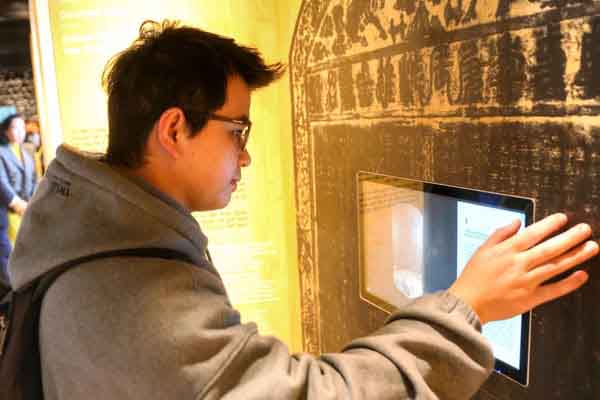 Không tham nhồi nhét thông tin với con chữ, Trưng bày “chạy” theo sự phát triển của công nghệ số hiện đại như áp dụng hình thức quét mã QR để du khách có thể chủ động khám phá và tìm hiểu thêm nhiều tư liệu mà mình muốn như những giai thoại hấp dẫn về Lê Văn Hưu hay bài đồng dao của Nguyễn Hiền,… Phần thuyết minh câu chuyện được trình bày cả ba thứ tiếng là Việt, Anh, Pháp, và phần chữ tiếng Việt luôn được để cỡ chữ to hơn và in đậm hơn. Đây là một cách làm tinh tế và chuyên nghiệp để những thông tin của Trưng bày có thể tiếp cận rộng rãi đến với đa dạng du khách mà không lo ngại vấn đề rào cản ngôn ngữ.