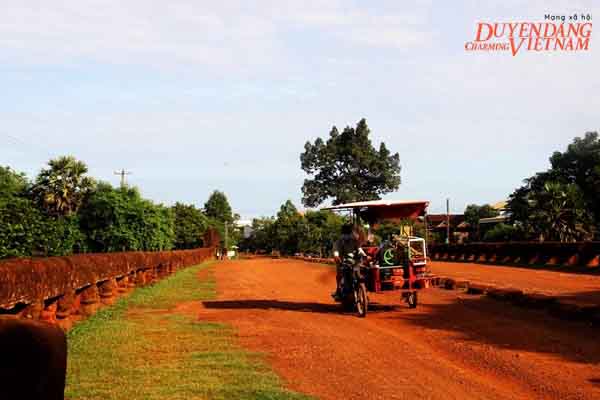 Xe dừng lại bên này cầu, một người thợ chụp ảnh đã chờ sẵn chụp ảnh, họ sẽ rửa rất nhanh sau khi khách tham quan và bán với giá 50 ngàn tiền Việt. Bức ảnh tôi chụp ba năm sau cũng là cái nền 5 ngọn tháp không khác gì mấy.Cây cầu Kompong Kdei với nền đất, có cột xi măng chắn giới hạn xe, chỉ có những chiếc xe tuk tuk và xe máy đi ngang. Nền cầu óng lên màu đất đoe, có cả cỏ xanh mọc. Dường như đây là cây cầu hiếm hoi phủ đất và cỏ xanh mọc như sự hân hoan cùng thời gian.