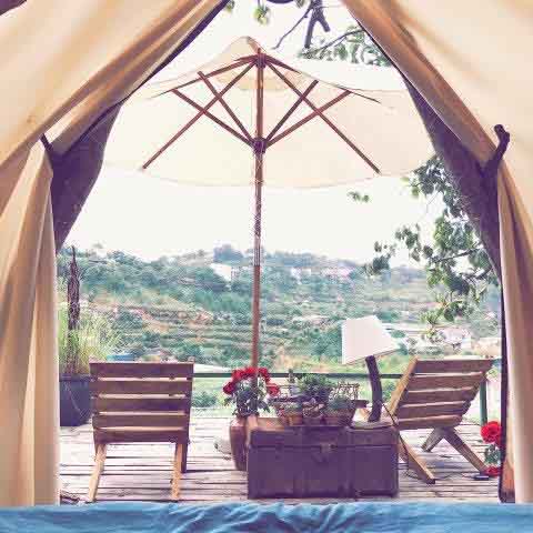 Hình thức ngủ lều ở The Shelter – Ảnh: Trang Nguyễn