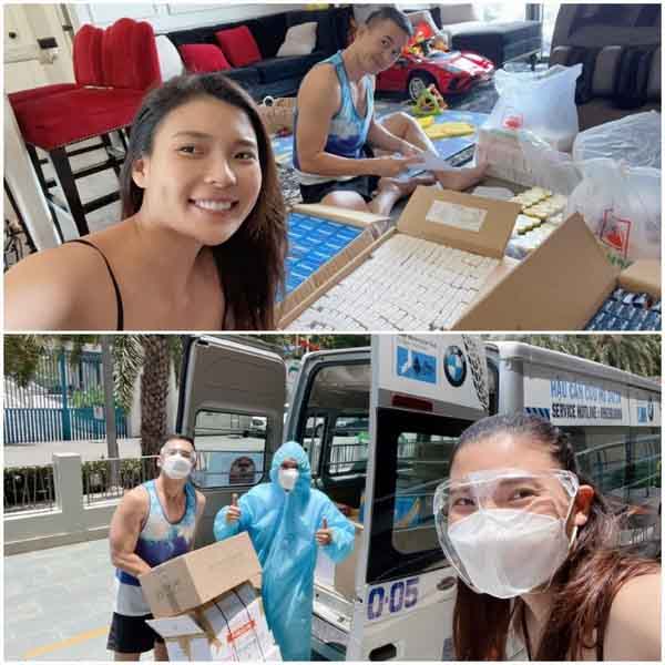 Ngôi nhà của vợ chồng diễn viên Thúy Diễm – Lương Thế Thành ngập tràn các loại thuốc giảm ho, sốt, tăng cường sức đề kháng… để hỗ trợ bệnh nhân F0 khó khăn đang cách ly tại nhà. Cặp đôi cùng người thân trong gia đình tích cực gói ghém hàng trăm phần thuốc theo toa của các bác sĩ rồi gửi cho tình nguyện viên chuyển đi.
