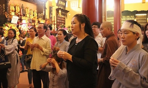 Nữ nghệ sĩ cho biết, hôm nay chưa tròn 49 ngày nhưng gia đình quyết định làm sớm vì những ngày tới chùa bận chuẩn bị cho lễ Phật Đản.