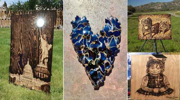 Nghệ sĩ Mỹ Michael Papadakis dùng ánh nắng mặt trời tạo nên những tác phẩm nghệ thuật trên gỗ (Ảnh: The Epoch Times)