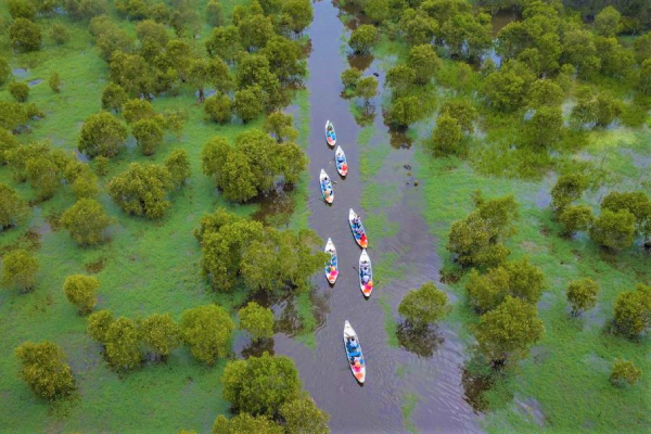 “Sắc thái xanh” là gam màu chủ đạo hài hòa, đồng điệu của cảnh vật tự nhiên tạo nên khung cảnh bạt ngàn và giàu chất điện ảnh gợi nhiều xúc cảm. Thế nên rừng tràm Trà Sư dần trở thành phim trường thu hút giới điện ảnh chọn để hiện thực những thước phim đầy chất nghệ thuật. Hoang dã, mộng mơ như cổ tích khi thuyền rẽ sóng trên những con đường nước hút tầm mắt tạo bởi những cây tràm cổ kính phủ bóng mát là khoảnh khắc bốn bề “xanh ngắt một màu” được trình diễn điệu nghệ đầy mê hoặc.