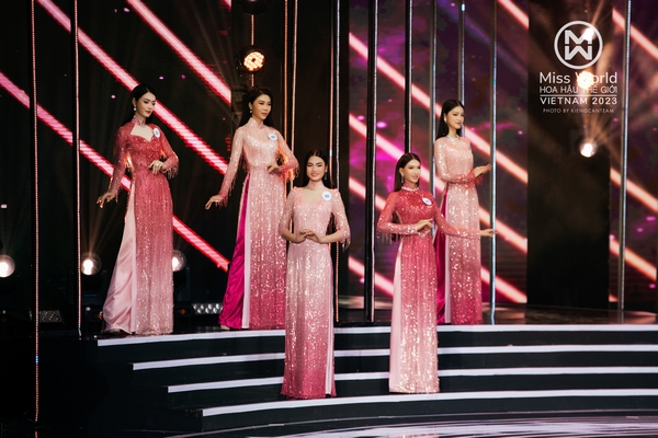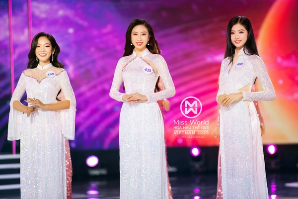 Trên sân khấu đêm Chung khảo toàn quốc “Miss World Vietnam 2023”, BST áo dài với chất liệu voan và ánh kim của NTK Ngô Nhật Huy mang tên “Ngân Hà” được dầy công đầu tư, chăm chút đã mang lại một dáng vẻ rất yêu kiều, nền nã cho các thí sinh.